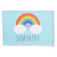Você tem um filho na sua vida que ama arco-íris? Esta linda pilha do arco-íris vai encorajá-los a sonhar com os arco-íris! A design apresenta um fundo azul-céu com um gráfico arco-íris que tem nuvens brancas e corações cor-de-rosa. Sua escolha de nome pode ser personalizada abaixo do arco-íris. A parte de trás do travesseiro tem um adorável padrão arco-íris. É a adição perfeita a um quarto de criança com tema arco-íris.