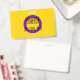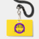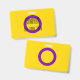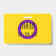 O fundo é a bandeira da orgulho para pessoas intersexo. É um anel roxo em um fundo amarelo. Há espaço para um nome personalizado e pronomes.