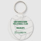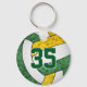 Este chaveiro temático de vôlei verde e dourado com equipe personalizada e nome mascote escolar apresenta um padrão caleidoscópico floral misturado com os painéis verde e dourado do vôlei na frente e um simples vôlei branco na parte de trás - personalize com seu nome, nome da equipe e número de camisa - por katz_d_zynes