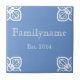 Azulejo do nome da família espanhola. Fundo azul. Personalizar cores.