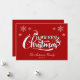 Nome da família vermelha design de cartão de Natal que contém as palavras "Feliz Natal" em letra estilo script com renas e flocos de neve e estrelas. Você pode personalizar este cartão para digitar seu nome de família e ano. Você também pode mudar a cor de fundo atrás do design e da parte traseira da placa, se quiser.