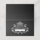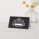 Este cartão de lugar dobrado é mostrado em preto com um impressão gráfico ou veado branco festivo, mas clássico, Feliz Natal, sinos holly e florescente. Espaço para escrever pessoalmente cada nome. Personalize este item ou comprar como está.