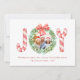 Este é o cartão perfeito para enviar saudações alegres durante o feriado. Este belo design apresenta canas de cor-d-água vermelha e doces brancos pintados manualmente e uma coroa verde com um adorável arco vermelho. A parte traseira da placa inclui um padrão clássico de bolinhas de cor vermelha. (Personalizar foto, mensagem e ano.)