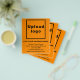 Fonte preta em folheto laranja, material de marketing que você pode distribuir aos clientes para divulgar o seu negócio ou promover a sua marca. Personalize-o fazendo o upload do logotipo da sua empresa, digitando o nome da empresa, endereço, número de telefone, e-mail e site ou página de mídia social e verifique a aparência. Se lhe agradar, você pode fazer o seu pedido agora. Se precisar fazer alterações, como redimensionar e mover o logotipo e textos para caber neste modelo de folheto ou em outros tamanhos que você irá escolher de acordo com a sua preferência, clique em personalizar mais. Depois de fazer as alterações, clique em pronto.