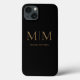 Iniciais Douradas Modernas Elegantes de Monograma Preto Nome iPhone 13 Case. Personalizar este monograma de eterno com 2 iniciais de monograma e nome de monograma de cheio. Presente perfeito para pai, presente de padrinho de casamento, presente para o noivo, ideia de presente de Natal para pais, presente de Natal para avô, ou até mesmo um presente pensativo e único para namorado.