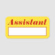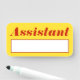 Este design do estilo de nome de etiqueta do do do crachá do estilo de apagar a seco reutilizável que atrai atenção e captura de olhos apresenta a mensagem "Assistente". Inclui também uma área em que o nome de um voluntário poderia ser escrito utilizando um marcador de apagamento a seco. Um crachá do estilo nametag como este poderia ser vestido para indicar que uma pessoa é um voluntário ou assistente autorizado em um evento. [~Z0000359]