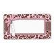 Impressão de chita rosa e castanho doce com arco e etiqueta de nome de etiqueta.