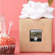 Monograma de Silhuette de galo preto com nome de etiqueta. Acima do frango está uma imagem de uma floresta nebulosa, que pode ser facilmente substituída por sua própria selfie, foto ou imagem. Uma ideia guardada por um dia de pai na fazenda ou no campo. Um presente ideal para um amigo. Tudo e elegante, mas ainda assim.