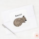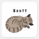 Ilustração de um adorável gato de mesa dormindo. Abaixo do gatinho bonito está uma opção de nome de etiqueta. Um presente ideal para um amor de gato que cresceu na fazenda.