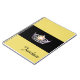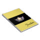 Caderno mostrado com um impressão da foto de um impressão colorido prata brilhando da coroa em um fundo preto e em um nome personalizado. Caderno mostrado no amarelo. Personalize este artigo e mude o nome a seu ou descole-o, ou compre-o como mostrado.