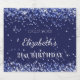 Um rótulo de vinho para uma festa de aniversário de 21 ruas (ou qualquer idade), de cor cinzenta e glamourosa. Um fundo azul marinho com confetti. Personalize e adicione uma data, nome e idade 21. O nome é escrito com um elegante script de estilo escrito à mão.