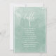 Ajude seus convidados a encontrar sua mesa com este elegante cartão verde-aquática elegante com nomes de convidados. Cartões duplos para que os hóspedes possam procurar os dois, frente ou verso pelos seus nomes. Espaço livre ao redor, dando-lhe a liberdade de usar clipes ou furos de perfuração para monitores suspensos, ou usar o suporte/quadro da mesa. Fundo de lavagem de cor verde-aquosa esbranquiçada e texto branco. Detalhes da caligrafia escrita à mão. Parte da nossa Coleção "Casamento do Monograma Botânico de Cor Verde Pálida" com uma variedade de produtos de coordenação disponíveis, incluindo cartões de números de tabela e menus e muito mais. Visite toda a coleção com este link: https://www.zazzle.com/collections/pale_green_watercolor_botanical_monogram_wedding-119012131862745496