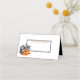 Perfeito para o jantar de Halloween! Este cartão de lugar é mostrado num gato festivo do Dia das Bruxas em impressão de abóbora. Personalizar este item ou comprar como está. imagem de estoque freepik.com