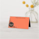 Perfeito para sua festa de janto de Halloween! Este cartão de lugar é mostrado em um impressão de abóbora de Halloween assustador. Personalize este item ou comprar como está.