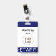 Personalize nosso crachá de nome de funcionário profissional com o logotipo da sua empresa, o nome do funcionário ou outro texto personalizado. É plástico pvc e disponível com um clipe de metal, um jardim ou um bobine retrátil. Este é um crachá azul marinho com um design minimalista moderno. Você pode personalizar facilmente as cores, fontes e design e, opcionalmente, adicionar conteúdo ao verso. Nenhuma quantidade mínima de ordem e nenhuma taxa de configuração. Todas as encomendas são satisfeitas pela Zazzle em produtos do Zazzle. O MISOOK NÃO tem suas informações de personalização, envio ou cartão de crédito, portanto entre em contato diretamente com a Zazzle para fazer perguntas, inclusive sobre como personalizar seu design.