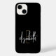 Adicione um toque exclusivo ao seu telefone celular com esta capa de telefone de células, preto, branco e ouro, elegante e na moda. Este design moderno e sofisticado apresenta seu próprio nome pessoal e iniciais graciosamente escritos em branco e ouro. O fundo preto fornece um pano de fundo chic enquanto o guião branco adiciona um toque de elegância. Este caso monograma personalizado é a maneira perfeita de mostrar seu estilo individual.
