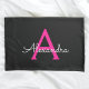 Caso de Travesseiro do Nome do Monograma Simples de Script Preto e Rosa Quente Isto faz o doce e perfeito aniversário de 16 anos, casamento, chá de panela, aniversário, chá de fraldas ou festa de solteira presente para alguém que ama luxo de luxo e estilos quíticos.