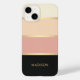 Um nome moderno clássico e na moda monograma Case-Mate iPhone 14 Case com grande design colorido e com listras douradas com cores Chic de chantilly, pêssego, blush e preto. Personalize facilmente este caso monográfico com o seu próprio nome para o tornar próprio.