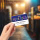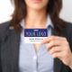Personalize nosso crachá de nome de PVC profissional com o logotipo da sua empresa, nome do funcionário, título do trabalho ou outro texto personalizado. É feito de plástico PVC durável. Projetado em azul e outras cores com uma design moderna minimalista pela MISOOK. Todas as cores são personalizáveis. Disponível com um pátio, clipe de metal ou bobina retrátil. As dimensões são de 3,38 polegadas x 2,13 polegadas. Nenhuma quantidade mínima de ordem e nenhuma taxa de configuração.