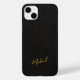 Nome da assinatura de um guião em ouro simples e elegante moderno sobre um fundo de couro preto sólido (textura de couro não é real, é IMPRESSO).