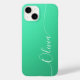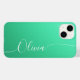 O Aquamarine Shimmer White Elegant Calliographic Personalizado Name Personalizado iPhone 14 Smart Capa de telefone apresenta um design moderno, moderno e moderno, simples e na moda, com seu nome personalizado em elegante tipografia de script de caligrafia escrita à mão sobre um fundo de ximmer de aquamarina metálico. Elaborado por ©Evco Studio www.zazzle.com/store/evcostudio