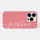Faça uma declaração de moda com o nosso moderno caso de Calliografia rosa com cor rosa com tendência iPhone 14 Pro. Criado com materiais de alta qualidade, este caso combina um design cor-de-rosa-coral sólido de tendência com um roteiro elegante de caligrafia para personalizá-lo com seu nome, dando a seu dispositivo um toque exclusivo.