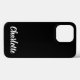 Nome personalizado de script de na moda personalizado de capas de iphone preto fofo moderno. Texto branco personalizável, fundo plano preto sólido.