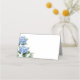 Este cartão de lugar dobrado é mostrado em branco básico com uma adorável impressão de arte azul hydrangea. Personalize este item ou exatamente como está e escreva o nome manualmente.