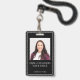 Um crachá moderno com seu nome e título em um fundo preto. .Basta adicionar sua foto e informações. Esta versão vem com um pátio, mas você pode escolher seu estilo de fixação que inclui, jardim, clipe de metal ou retrátil, ou nenhum anexo.