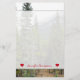 Características deste design dos artigos de papelaria uma foto de uma cena da floresta com árvores coníferas, junto com uma montanha no fundo. Igualmente caracteriza um próximo conhecido personalizado a parte inferior, entre formas do coração. [~Z0000011]