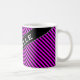 Características deste design da caneca um teste padrão simples de linhas/listras pretas e fúcsia alternas. Igualmente caracteriza um nome personalizado no texto colorido branco dentro de uma área colorida obscuridade, com ambos em um ângulo. [~Z0000051]