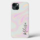 Capas de iphone do nome do arco-íris iridescente e Elegante Holográfico moderno. Personalizar com um nome de fonte de script de assinatura. Possui um histórico estético holo.