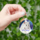 Esta bela chaveiro personalizada personalizada tem um retrato de arte feito pelo artista internacional Gatinho Harvill. Tem um gato persa branco, de cabelos longos, com olhos verdes, olhando para o lado. O fundo é um azul colorido e vibrante. O modelo permite adicionar seu nome ou texto para personalizar. Basta substituir as palavras de exemplo no modelo por suas. Ou você pode excluí-lo para deixá-lo vazio. Clique em personalizar para alterar o estilo ou a cor da fonte. Encontre outra arte animal na KHarvill Art.