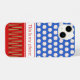 Esta capa de telefone padronizada de beisebol também pode ser personalizada com seu nome ou outro texto. Há um padrão brilhante de bolinhas de baseball em um fundo azul, e um padrão coordenado de morcegos de baseball em um fundo vermelho.