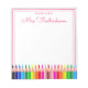 Moderno Da Mesa Do Bloco De Notas Com Nome. Este design apresenta um nome de script manuscrito e, no fundo, lápis coloridos sobre fundo branco. Você pode personalizar este script com letra manual com seu nome. Se você não precisar personalizar, poderá excluí-lo. Este bloco de notas é uma ideia perfeita de presente para os professores e para ela em qualquer ocasião. Se você precisar de ajuda ou item correspondente, entre em contato comigo. 3364