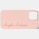 Melhore o chic e o sofisticado apelo do seu iPhone 13 Pro Max com o nosso Caso Personalizado de Script Sólido e Rosa Moderno Feminino. Criado com precisão, esse caso leve é projetado para oferecer proteção excepcional e, ao mesmo tempo, adicionar um toque de estilo personalizado. A matiz rosa suave complementa a escrita feminina elegante, criando uma estética elegante. Personalize o caso com seu próprio nome, fazer-o como um acessório exclusivo que reflita verdadeiramente sua individualidade. Atualize a aparência do seu iPhone e proteja-a de arranhões, saliências e visto diário com este na moda, mas prático caso.