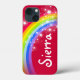 Um caso de nome personalizado brilhante e colorido do arco-íris. O caso diz Sierra. Arte original e design por Sarah Trett para www.mylittleeden.com