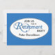 Um convite elegante a uma festa de aposentadoria pode ser enviado a amigos e familiares quando alguém se aposentar. O fundo azul real define a área da mensagem oval com detalhes do script.