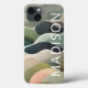 O moderno Abstrato Wavy Pattern Personalized Name capas de iphone apresenta um padrão de onda abstrato em cinzas, verde e rosa com seu nome personalizado na tipografia branca moderna. Perfeito para presentes de Natal personalizados e feriados de inverno. Concebido por © Evco Studio www.zazzle.com/store/evcostudio