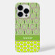 As bolas de tênis criam um padrão de bolinhas brilhante, e há um padrão adicional de raquetes de tênis cor-de-rosa em um fundo verde-claro. Uma faixa verde dá espaço para você personalizar com um nome ou outro texto em um script branco.