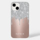 O Modern Silver Glitter Drips Rosa capas de iphone Dourado de Nome Personalizado.