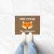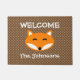 Nome personalizado tapete de porta de bolinhas de raposa vermelha fox. Cor castanha da natureza. Design de vetor animal florestal. Faça seu próprio monograma personalizado com fundo de bolinhas de cor personalizado. Adicione sua própria mensagem de boas-vindas, nome da família, monograma, sobrenome ou citação engraçada. Boa ideia de presente para amigos, recém-casados e família com nova festa de casa/lar. Fundo de polkadots de cor personalizado. Escrita elegante em quadrinhos. Sinal de porta personalizável modelo. Crie seu próprio tapete de entrada / tapete para porta da frente / entrada ou hall / local de casamento, varanda, jardim etc. decorações/decorações de casa ao ar livre personalizáveis para sua casa no lago. Disponível em tamanho pequeno e grande. Ótima ilustração animal para adultos e crianças.