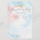 Este cartão de jogo de chá de fraldas apresenta um script moderno sobre fundo cor-de-água rosa e azul com uma coroa dourada, perfeito para a sua festa de revelação de gênero moderna!
