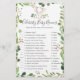 O cartão de jogo de nomes de bebês de celebridades de chás de fraldas temática elefante apresenta uma ilustração elefante de cor d'água e verde-aquarela eucalipto garland e uma elegante fonte de estilo manuscrito.