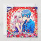 Rapaz de anime e garota se abraçando cercado por flores coloridas. Casal de anime bonito, menina de cabelo rosa e menino de cabelo azul. Personalize adicionando seus nomes na área de personalização.