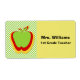 etiquetas de nome de Excelente para professores, feitas em cheques verdes e brancos, no lado esquerdo, e amarelo sólido, no lado direito. As maçãs coloridas em camadas decoram o fundo verificado e o texto preto, no lado amarelo sólido do autocolante. Personalize o texto para ler o que você quiser. Excelente para voltar à escola, abrir casa e conhecer as ocasiões do professor.