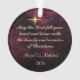 Belo Enfeites de natal mostra a Estrela de Belém e os nomes de Jesus em um fundo estrelado de abstrato vermelho. O verso do ornamento pode ser personalizado com os detalhes de sua escolha.