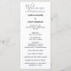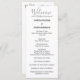 Bem-vindo é escrito em um roteiro elegante de cinza escura. Nomes de noiva e de noiva em tipografia negra contra fundo branco nítido. A parte de trás tem Festa de casamento gravada no topo. Projetado para até seis damas de honra e nomes de padrinhos de casamento. Se você tiver uma festa de casamento menor, simplesmente exclua as bridesmaids extras e as linhas de padrinhos de casamento não necessárias e remova o espaçamento extra entre elas, clicando no botão deletar para mover a linha para cima para manter o espaçamento de uniformidade. Design original © TamiraZDesign.