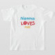 Nonna ama-me T-shirts, fatos-chave, cartas, bolsas e outras engrenagens com um design de texto azul, vermelho e amarelo.