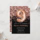 9.º Aniversário Convite Rosa negro brilhante negro negro negro negro negro e rosa ouro 9.º convite de aniversário para uma menina de 9 anos com modernos roteiros escrevendo e balões de folha divertida.